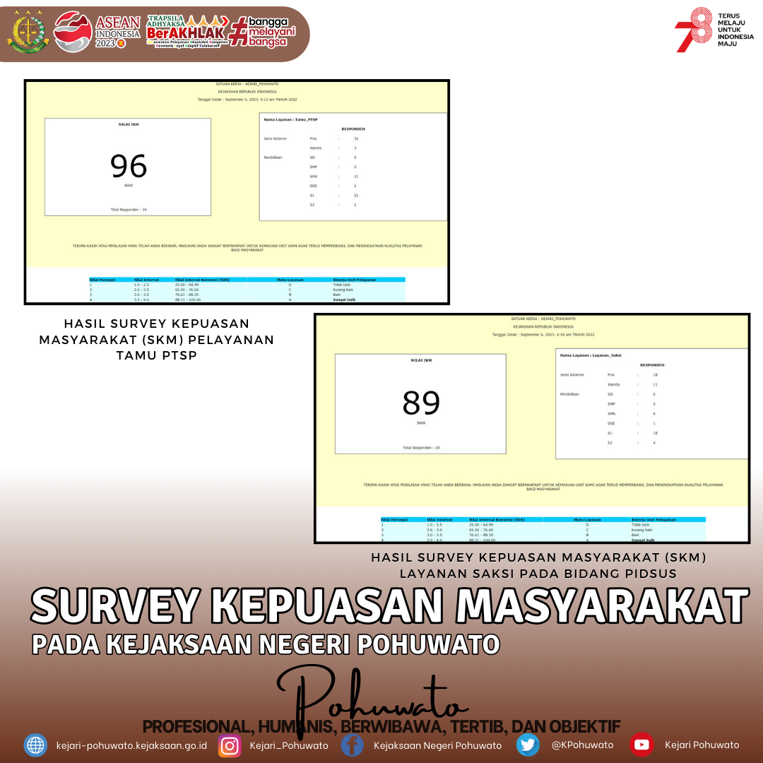 Berikut adalah Lampiran Hasil Survey Kepuasan Masyarakat (SKM) pada Kejaksaan Negeri Pohuwato