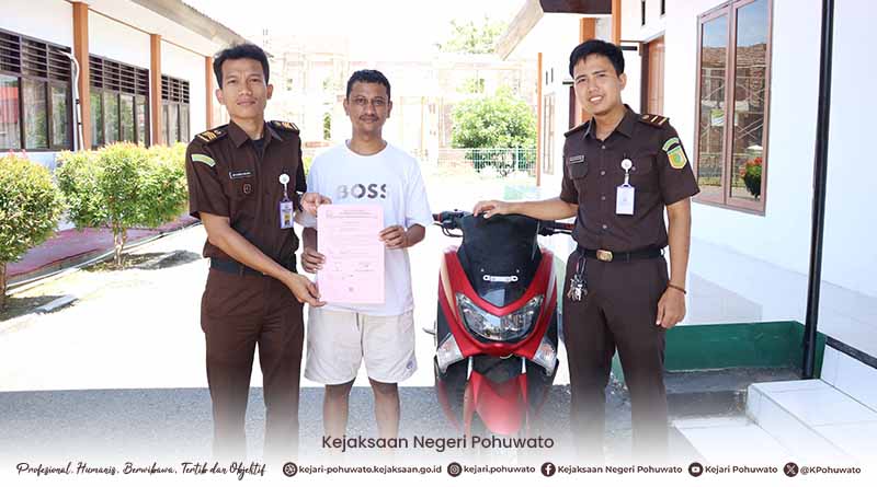 Bidang Pemulihan Aset dan Pengelolaan Barang Bukti (PAPBB) Kejaksaan Negeri Pohuwato melaksanakan pengembalian barang bukti kepada Fadli Basrewan berdasarkan Surat Perintah Kepala Kejaksaan Negeri Pohuwato Nomor PRINT-658/P.5.14/Eoh.3/08/2025 Tanggal 05 Agustus 2025 dalam perkara a.n. Abdul Gafur Murad dan Berdasarkan Putusan Pengadilan Negeri Marisa Nomor 26/Pid.B/2025/PN Tanggal 22 Maret 2025. sesuai Pasal 363 Ayat (1) Ke-3 KUHPidana tentang Pencurian.