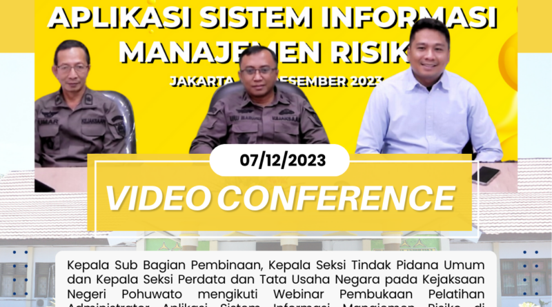 Kepala Sub Bagian Pembinaan Umar Pakaya, S.H., Kepala Seksi Tindak Pidana Umum Lulu Marluki, S.H., dan Kepala Seksi Perdata dan Tata Usaha Negara Muhammad Akbar Wahid, S.H., pada Kejaksaan Negeri Pohuwato mengikuti Webinar Pembukaan Pelatihan Administrator Aplikasi Sistem Informasi Manajemen Risiko di Lingkungan Kejaksaan RI Tahun 2023.